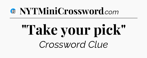 The clue “”Take your pick”” most recently appeared in a USA Today Crossword on April 29, 2025.