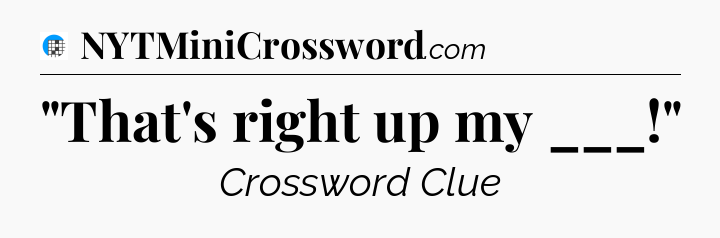 The Answer for “That’s right up my ___!” Crossword Clue is: