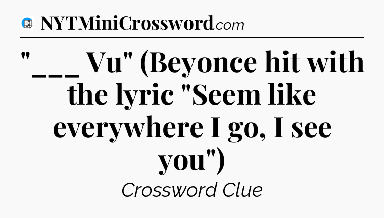 The Answer for “___ Vu” (Beyonce hit with the lyric “Seem like everywhere I go, I see you”) Crossword Clue is: