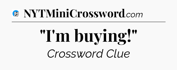 The clue “”I’m buying!”” most recently appeared in a USA Today Crossword on April 4, 2025.