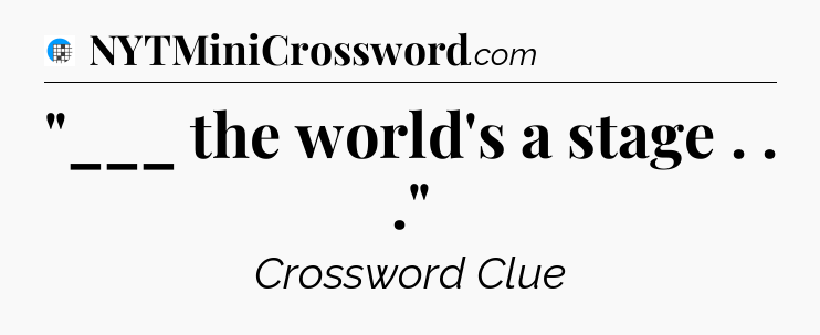 The Answer for “___ the world’s a stage . . .” Crossword Clue is: