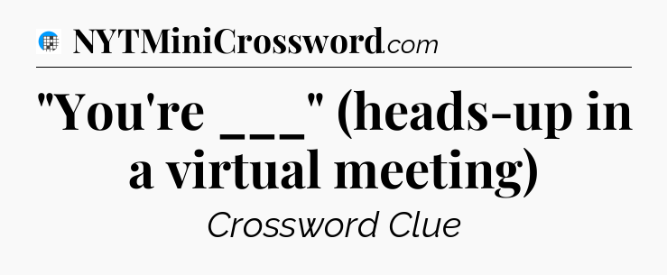 The clue “”You’re ___” (heads-up in a virtual meeting)” most recently appeared in a USA Today Crossword on April 8, 2024.
