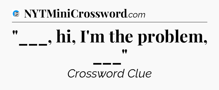 The Answer for “___, hi, I’m the problem, ___” Crossword Clue is: