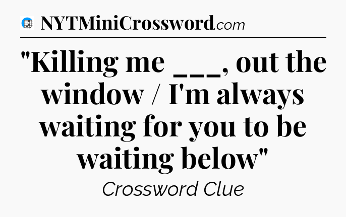 The clue “”Killing me ___, out the window / I’m always waiting for you to be waiting below”” most recently appeared in a USA Today Crossword on May 17, 2025.
