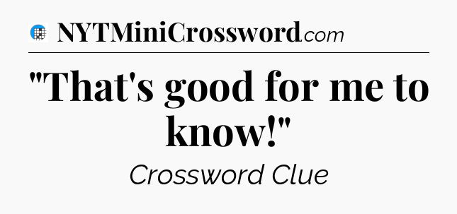 The clue “”That’s good for me to know!”” most recently appeared in a USA Today Crossword on May 18, 2025.