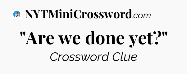 The clue “”Are we done yet?”” most recently appeared in a USA Today Crossword on May 19, 2024.