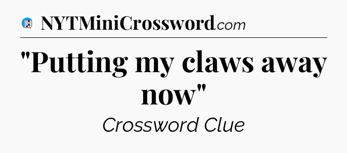 The clue “”Putting my claws away now”” most recently appeared in a USA Today Crossword on May 23, 2024.