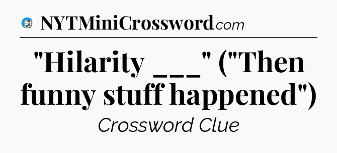 The clue “”Hilarity ___” (“Then funny stuff happened”)” most recently appeared in a USA Today Crossword on May 29, 2024.