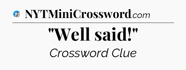 The clue “”Well said!”” most recently appeared in a USA Today Crossword on May 5, 2024.