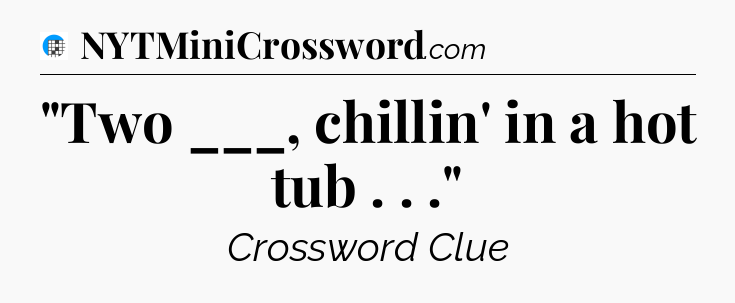 The clue “”Two ___, chillin’ in a hot tub . . .”” most recently appeared in a USA Today Crossword on May 6, 2024.