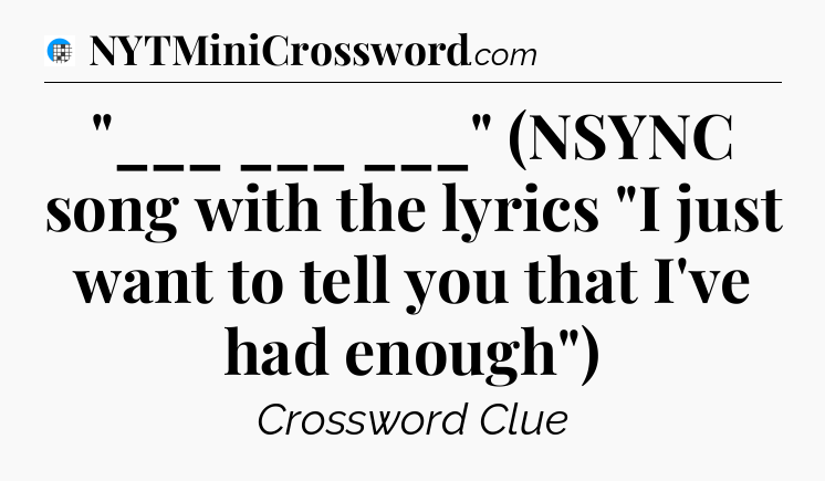 The clue “”___ ___ ___” (NSYNC song with the lyrics “I just want to tell you that I’ve had enough”)” most recently appeared in a USA Today Crossword on May 9, 2025.