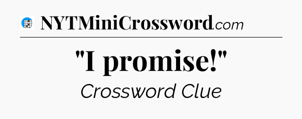 The clue “”I promise!”” most recently appeared in a USA Today Crossword on May 9, 2025.