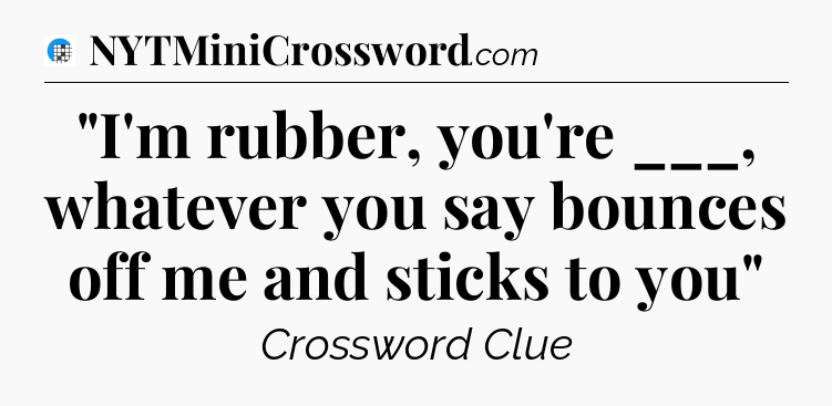 The clue “”I’m rubber, you’re ___, whatever you say bounces off me and sticks to you”” most recently appeared in a USA Today Crossword on June 1, 2024.