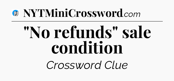 The clue “”No refunds” sale condition” most recently appeared in a USA Today Crossword on June 1, 2025.