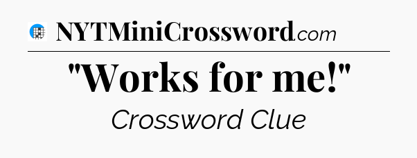 The clue “”Works for me!”” most recently appeared in a USA Today Crossword on June 10, 2024.