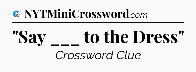 The clue “”Say ___ to the Dress”” most recently appeared in a USA Today Crossword on June 15, 2024.
