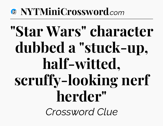 The clue “”Star Wars” character dubbed a “stuck-up, half-witted, scruffy-looking nerf herder”” most recently appeared in a USA Today Crossword on June 15, 2024.