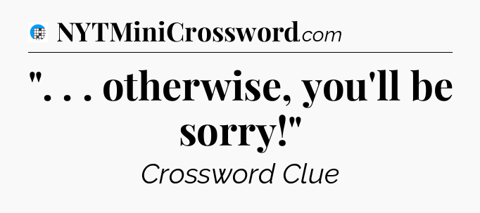 The clue “”. . . otherwise, you’ll be sorry!”” most recently appeared in a USA Today Crossword on June 16, 2025.