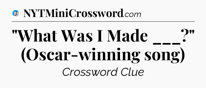 The clue “”What Was I Made ___?” (Oscar-winning song)” most recently appeared in a USA Today Crossword on June 22, 2025.