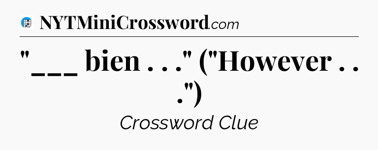 The clue “”___ bien . . .” (“However . . .”)” most recently appeared in a USA Today Crossword on June 29, 2024.