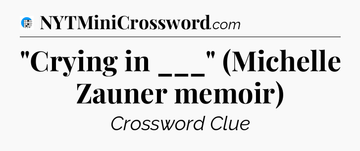 The clue “”Crying in ___” (Michelle Zauner memoir)” most recently appeared in a USA Today Crossword on June 29, 2024.