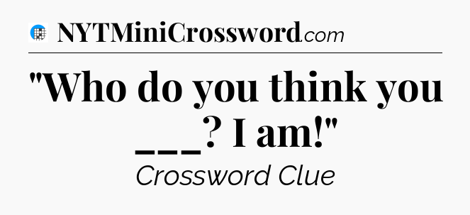 There is 1 possible answer for the crossword clue “”Who do you think you ___? I am!””.