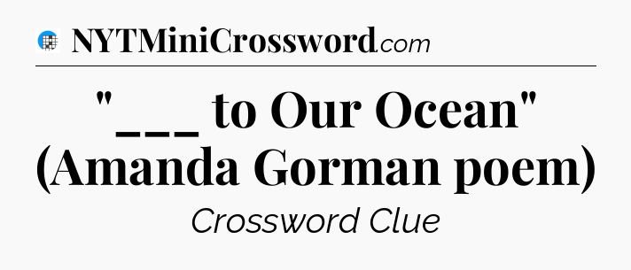 The clue “”___ to Our Ocean” (Amanda Gorman poem)” most recently appeared in a USA Today Crossword on July 1, 2025.