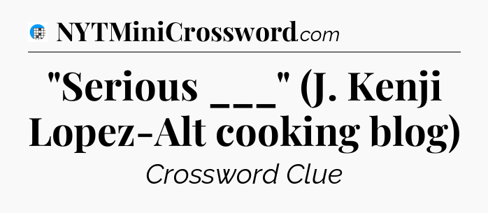 The clue “”Serious ___” (J. Kenji Lopez-Alt cooking blog)” most recently appeared in a USA Today Crossword on July 10, 2024.