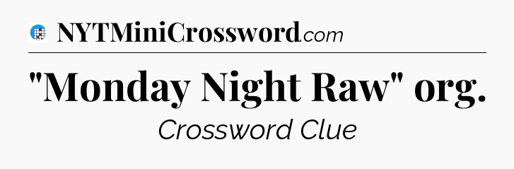 The clue “”Monday Night Raw” org” most recently appeared in a USA Today Crossword on July 11, 2025.