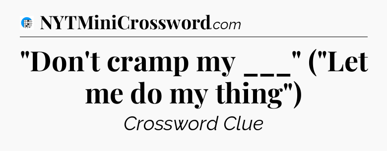 The clue “”Don’t cramp my ___” (“Let me do my thing”)” most recently appeared in a USA Today Crossword on July 12, 2025.