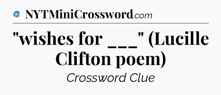 The clue “”wishes for ___” (Lucille Clifton poem)” most recently appeared in a USA Today Crossword on July 14, 2024.