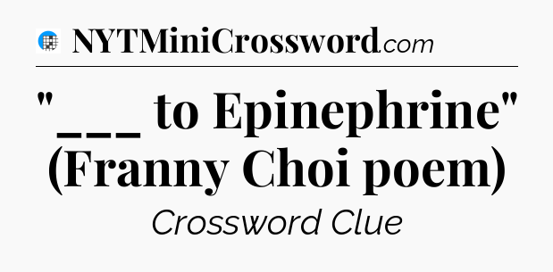 There is 1 possible answer for the crossword clue “”___ to Epinephrine” (Franny Choi poem)”.