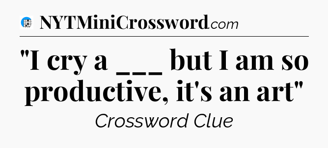 The Answer for “I cry a ___ but I am so productive, it’s an art” Crossword Clue is: