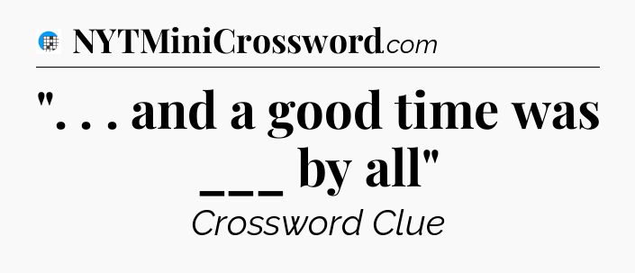 The clue “”. . . and a good time was ___ by all”” most recently appeared in a USA Today Crossword on July 19, 2024.