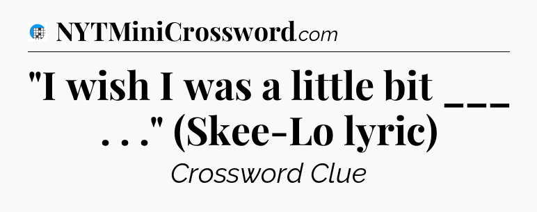 The clue “”I wish I was a little bit ___ . . .” (Skee-Lo lyric)” most recently appeared in a USA Today Crossword on July 2, 2024.