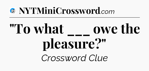 The clue “”To what ___ owe the pleasure?”” most recently appeared in a USA Today Crossword on July 20, 2025.
