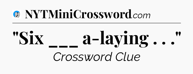 The clue “”Six ___ a-laying . . .”” most recently appeared in a USA Today Crossword on July 24, 2024.