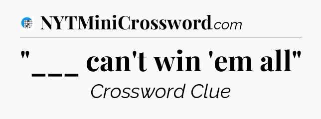 The clue “”___ can’t win ’em all”” most recently appeared in a USA Today Crossword on July 26, 2025.