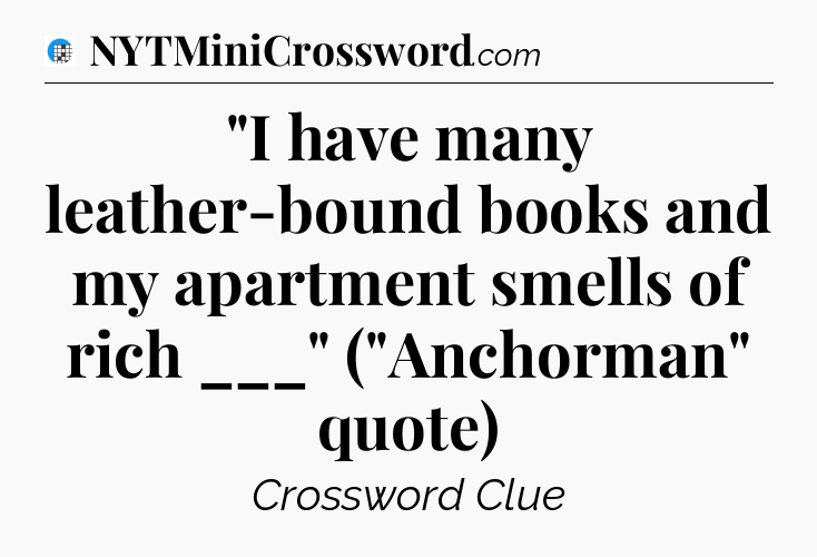 The clue “”I have many leather-bound books and my apartment smells of rich ___” (“Anchorman” quote)” most recently appeared in a USA Today Crossword on July 26, 2025.