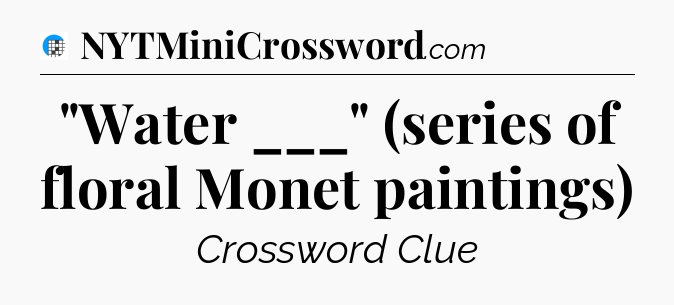The clue “”Water ___” (series of floral Monet paintings)” most recently appeared in a USA Today Crossword on July 28, 2024.