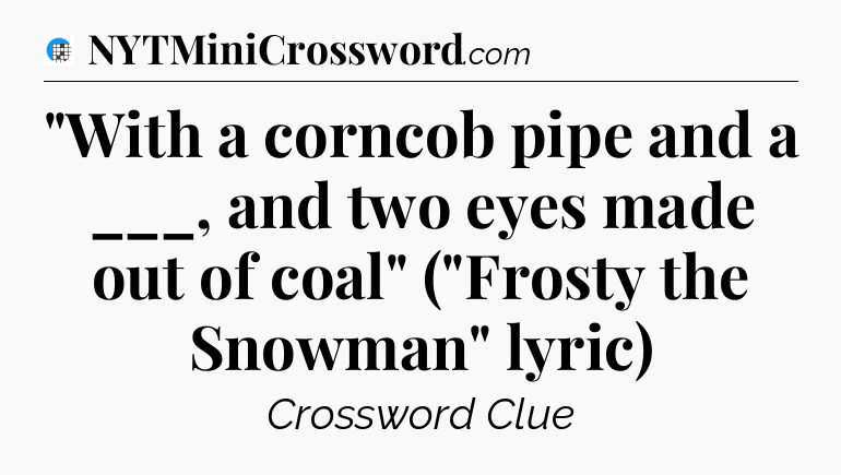 The clue “”With a corncob pipe and a ___, and two eyes made out of coal” (“Frosty the Snowman” lyric)” most recently appeared in a USA Today Crossword on July 30, 2024.
