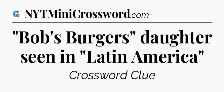 The clue “”Bob’s Burgers” daughter seen in “Latin America”” most recently appeared in a USA Today Crossword on July 31, 2025.