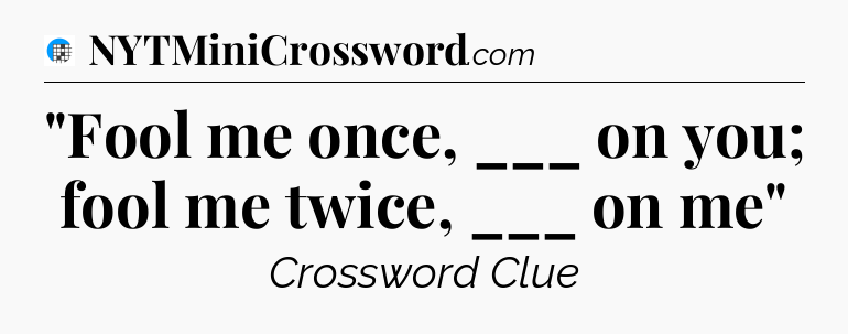 The clue “”Fool me once, ___ on you; fool me twice, ___ on me”” most recently appeared in a USA Today Crossword on July 31, 2025.