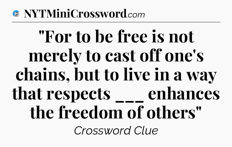 The clue “”For to be free is not merely to cast off one’s chains, but to live in a way that respects ___ enhances the freedom of others”” most recently appeared in a USA Today Crossword on July 4, 2025.