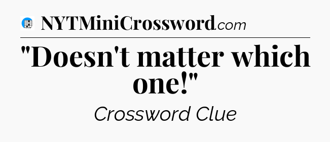 The clue “”Doesn’t matter which one!”” most recently appeared in a USA Today Crossword on July 6, 2024.
