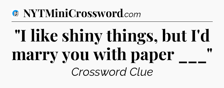 There is 1 possible answer for the crossword clue “”I like shiny things, but I’d marry you with paper ___””.