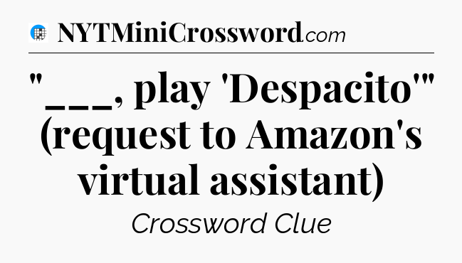 There is 1 possible answer for the crossword clue “”___, play ‘Despacito'” (request to Amazon’s virtual assistant)”.