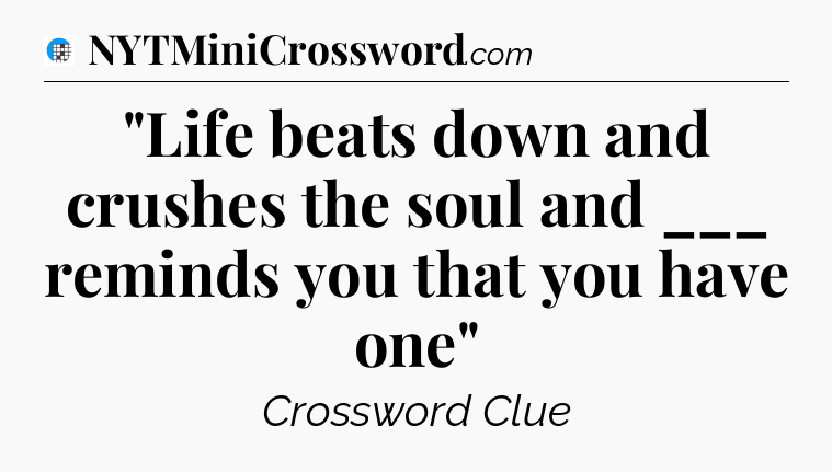 The clue “”Life beats down and crushes the soul and ___ reminds you that you have one”” most recently appeared in a USA Today Crossword on August 1, 2024.