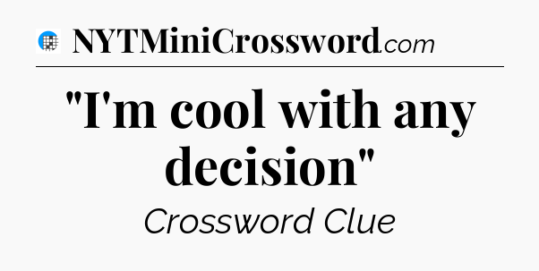The clue “”I’m cool with any decision”” most recently appeared in a USA Today Crossword on August 10, 2024.