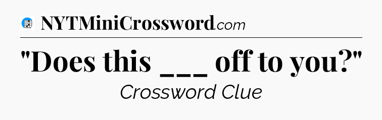 The clue “”Does this ___ off to you?”” most recently appeared in a USA Today Crossword on August 12, 2025.
